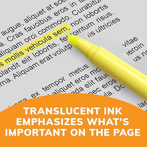 Make organization fun and easy with the BIC Brite Liner Highlighters Assorted Colors. These highlighters have a chisel tip for broad highlighting or fine underlining, making them perfect for highlighting school or office documents. BIC’s highlighter markers use translucent ink to emphasize what’s important on the page without obscuring the text below. Reliable and long-lasting, each BIC Brite Liner highlighter writes for up to eight hours without a cap and does not dry out, so you can work with confidence. The convenient pen-shaped design lets you easily grip and comfortably use the highlighters to organize your notes or underline passages in textbooks, notebooks and documents. Looking for classic highlighters for journals or assorted color marker sets for adults? BIC Brite Liner Multicolor Highlighters add a fun pop of flair to your art, office or school supplies. Each pack contains 12 chisel tip highlighter markers in the following assorted colors: yellow, pink, blue, green and orange. BIC highlighters are ACMI-approved for a high-quality, safe product you can trust. Whether you’re emphasizing text or just feel like getting creative, choose BIC Brite Liner Highlighters.