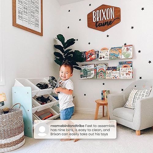 – Nine (9) plastic storage bins in varying sizes for easy organization