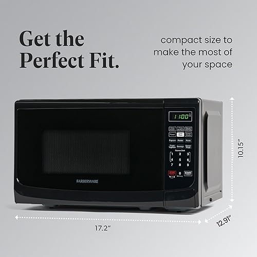 Farberware Countertop Microwave 700 Watts, 0.7 Cu. Ft. – Microwave Oven With LED Lighting and Child Lock – Perfect for Apartments and Dorms – Easy Clean Grey Interior, Retro Black