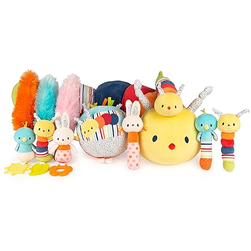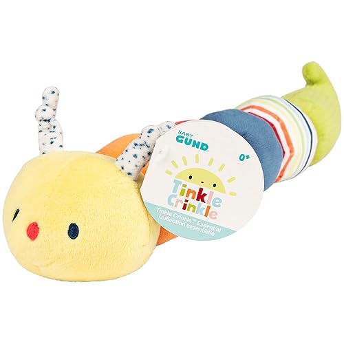 – 14-inch Tinkle Crinkle Caterpillar designed with surprises in each round section: squeaker, crinkle, rattle, and more