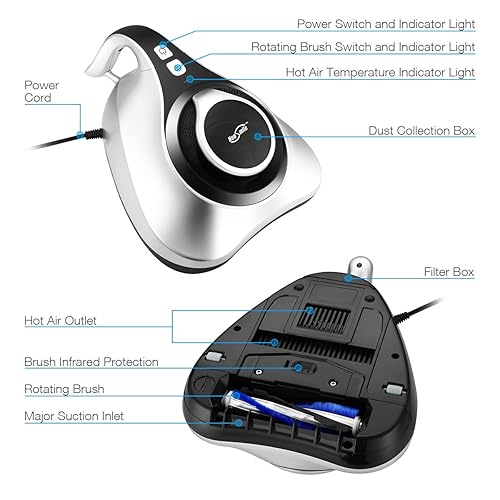– Housmile UV Dust Vacuum Cleaner designed for mattresses, cloth sofas, fabric sofas, toys, fluffy mats, carpets, curtains, towels, underwear, and pet hair