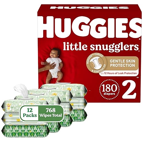 Huggies Little Snugglers Diapers & Wipes Bundle: Huggies Little Snugglers Size 2 Baby Diaper, 180ct & Huggies Natural Care Sensitive Wipes, Unscented, 12 Packs (768 Wipes Total) (Packaging May Vary) GPT Short Title: