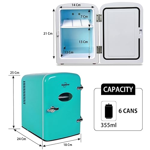 Koolatron Retro Mini Fridge for Office Small Refrigerator 4L Mini Refrigerator Skincare Fridge Portable Mini Fridge Dorm Fridge Personal Cooler 12V AC Desktop Accessory Travel Aqua