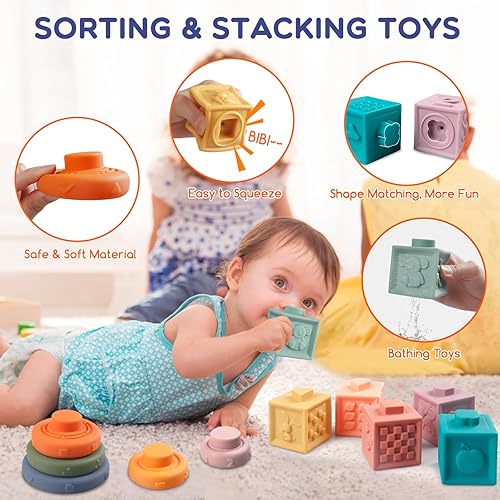 Montessori Baby Toys for 1+ Year Old – Sorting Stacking Learning Toys 6 to 12 Months, Wooden Building Blocks, Xylophone Musical, Infant Teethers Toys for Babies, 6 in 1 Toy Gifts for Toddlers