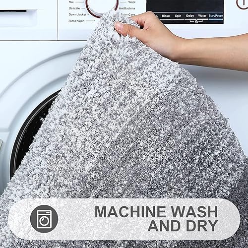 OLANLY Luxury Bathroom Rug Mat 24×16, Soft Microfiber Bath Rugs, Non-Slip Shaggy Bath Carpet, Machine Washable, Grey