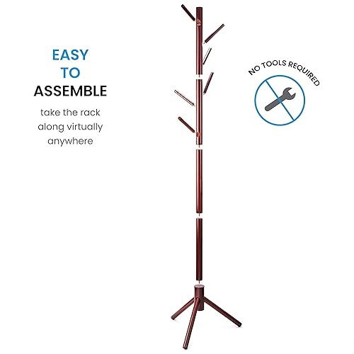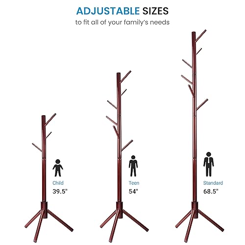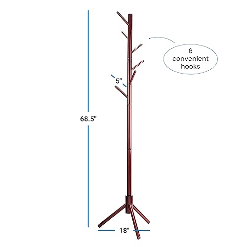 Prime Member Deal: ZOBER Coat Rack – Wooden Free Standing Coat Tree with 6 Hooks – Adjustable Sizes, Easy Assembly – Cherry