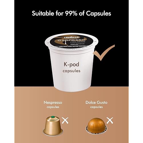 – Compatible with flat-bottom K-pod coffee capsules and can also be used for ground coffee and loose leaf tea
