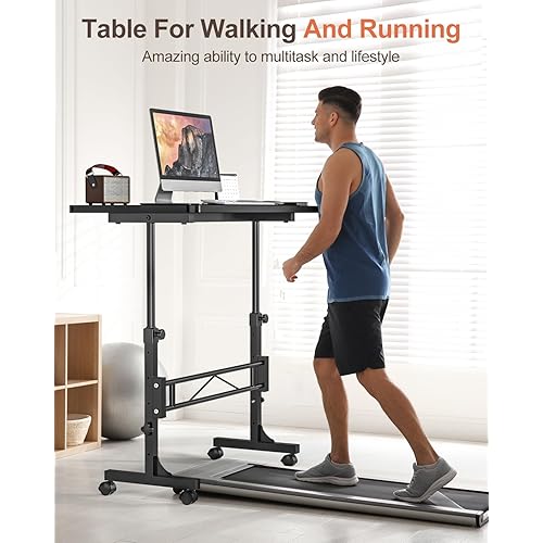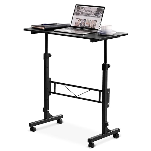 Small Standing Desk Adjustable Height, Mobile Stand Up Desk with Wheels, 32 Inch Portable Rolling Desks for Walking Pad Treadmill Black