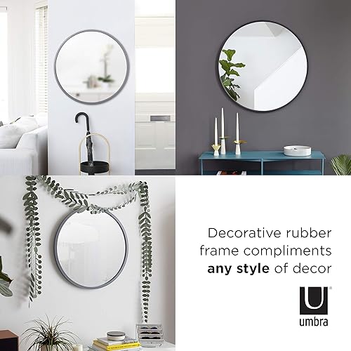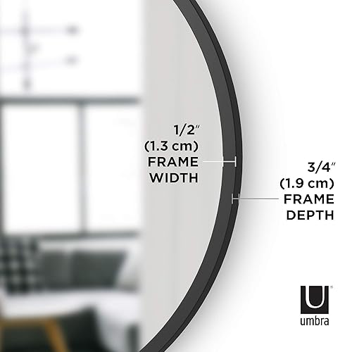 – The Hub Mirror by Umbra is a large wall mirror perfect for high-traffic areas like entryways, washrooms, living rooms, and hallways.