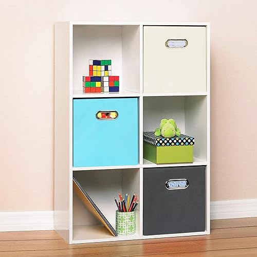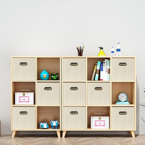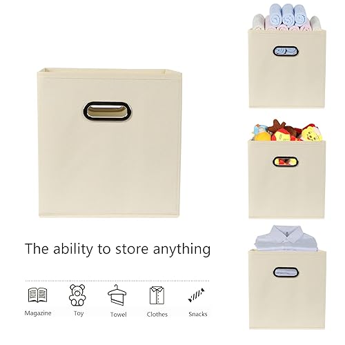 Yunkeeeper storage bins Cubes, Fabric Cube Organizer with Handle, Foldable Cube Bins for Cloth or Accessary Storage, 11x11x11, Set of 6, (Creamy White)